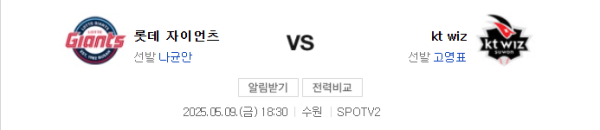 KT 위즈 vs 롯데 자이언츠.